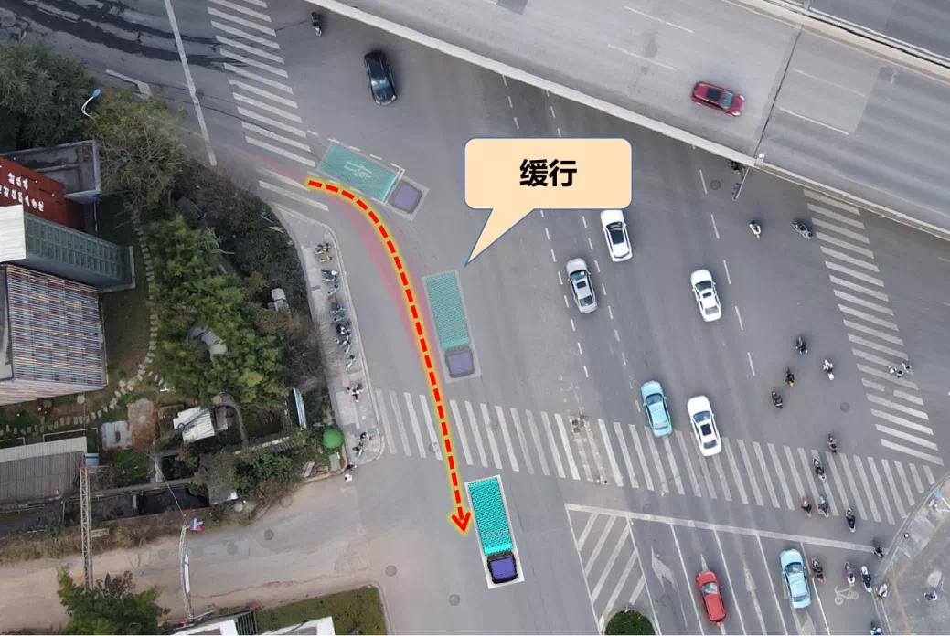 经观察确认安全后,车辆可缓慢起步,实施右转。第四步:缓行