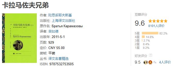 《卡拉马佐夫兄弟》是俄国文学,或者说世界文学史上的一座高山。其实这山并不算高,书稿约80万字,但却是我今年花最久时间阅读的书。小说围绕着老爹费尧多尔·卡拉马佐夫、长子米嘉、二哥伊凡、幼子阿辽沙和私生子斯麦尔佳科夫展开,主线故事是父子矛盾及弑父的行为,但在弑父前,各方人物的出场,陀思妥耶夫斯基都照顾到了,显得格外松散,读起来就不快,尤其是教会辩论那一段,可以说是非常精彩且抽象的一段思想雄辩,值得反复咀嚼。当行文当了下半部分,费尧多尔被杀,米嘉被指控为凶手,整个节奏才稍微明朗了一些。