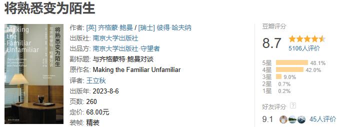 《将熟悉变为陌生》是齐格蒙特·鲍曼的一篇访谈合集。通俗又深邃,直白又睿智,对世界与自我都是一种调侃的姿态,活得久就是好呀,鲍曼透露了遥远与当下的呼应,那些超前的设定落到现实里并未失效,并未过时。