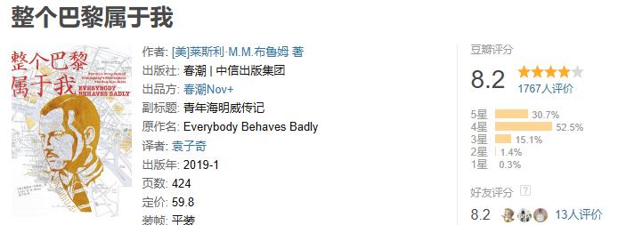 《整个巴黎属于我》是一部关于青年海明威的传记。有人说这本书不应该翻译成这样一个浪漫的书名,我不同意,只有《整个巴黎属于我》才能概括出海明威的傲慢、自大、狂野和不自信。