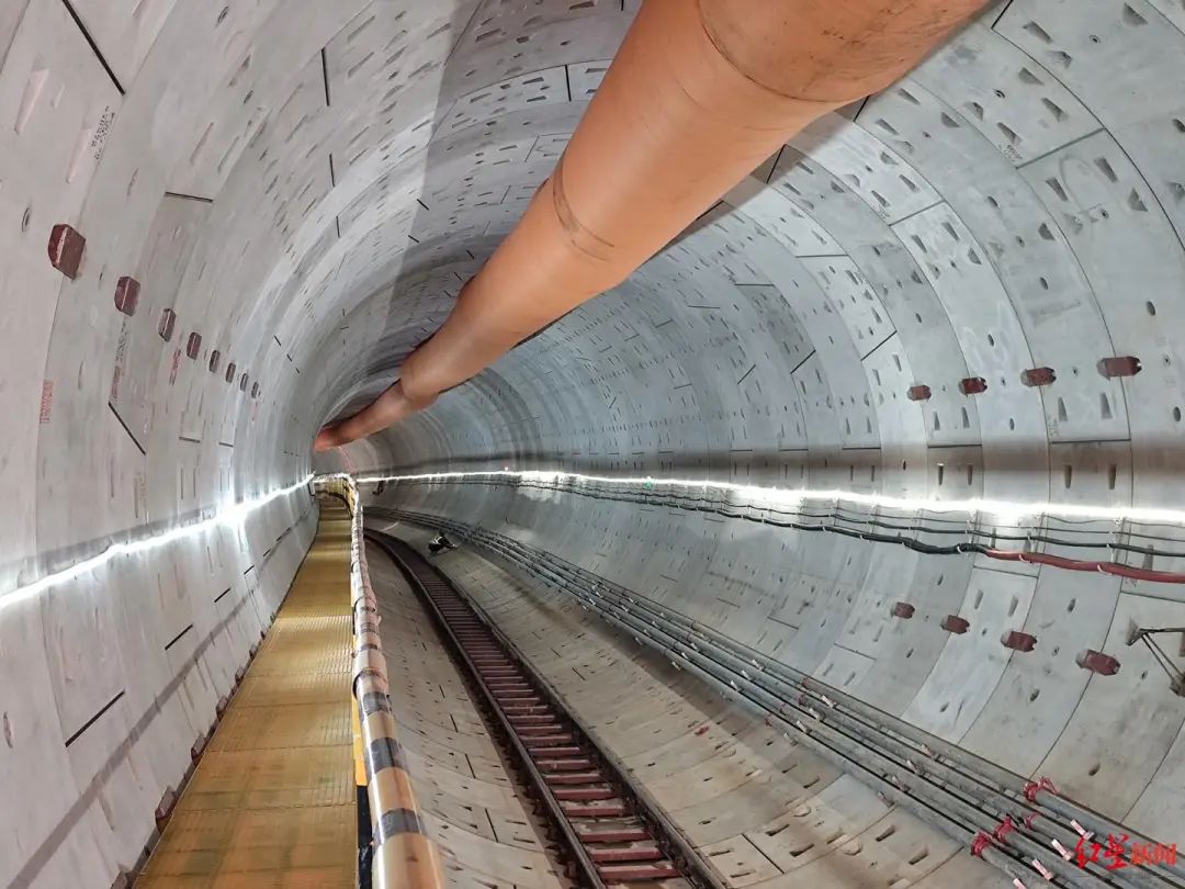该盾构区间右线全长约1245米,于2024年9月22日在成都市北三环路内侧辅道始发。为确保顺利完成穿越,成德线施工管理团队反复研究优化实施方案,多次组织专家充分论证,在成都轨道建设领域成功实现了三个首次突破:首次在软弱地层下长距离斜穿成都北三环路,穿越距离长达470米;穿越区间最大纵向坡度首次达到34‰,即区间每1000米隧道首末端高差达34米,建设管理团队为提高施工安全性,尽可能加大穿越地层深度,选择较稳定的地层穿越,从而降低对周边环境的影响;首次在成都轨道建设领域配备地层位移计,相当于为盾构加上“智慧双眼”,从而实时监测地层变化情况,并根据监测数据优化盾构施工参数,保障施工安全。