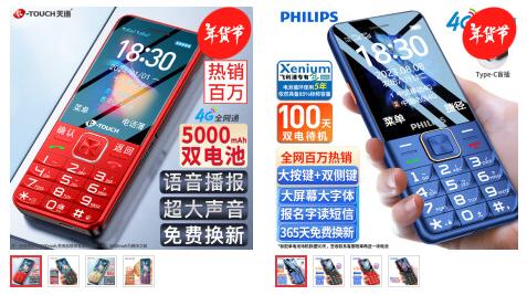 在5G时代,仍然有一部分用户在网上选购功能机,双卡双待、超长待机、声音响、字体按键大……从评价数量来看,这些老人机、学生机一个商品链接就能月销上百台,很受欢迎。