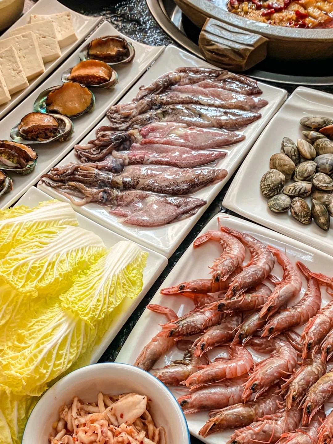 翻腾的锅底,鲜香美味的辣椒锅底,锅上袅袅升起的热气与香味,在青岛的冬天吃上一口辣辣的火锅,那叫一个满足!