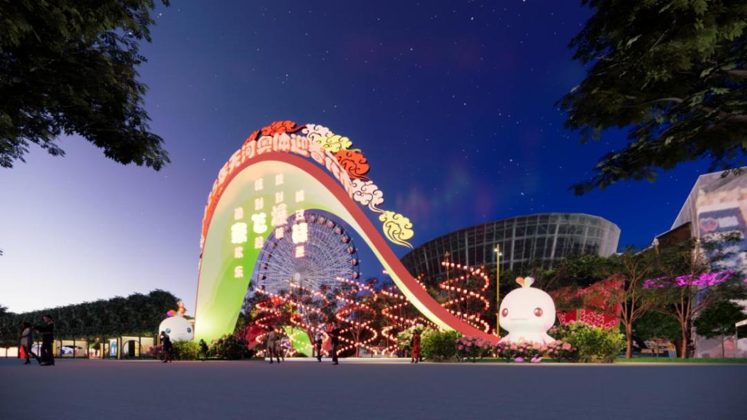 2025年天河奥体迎春花市牌楼以“林中花、花中林”为设计主题。