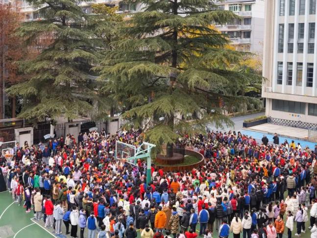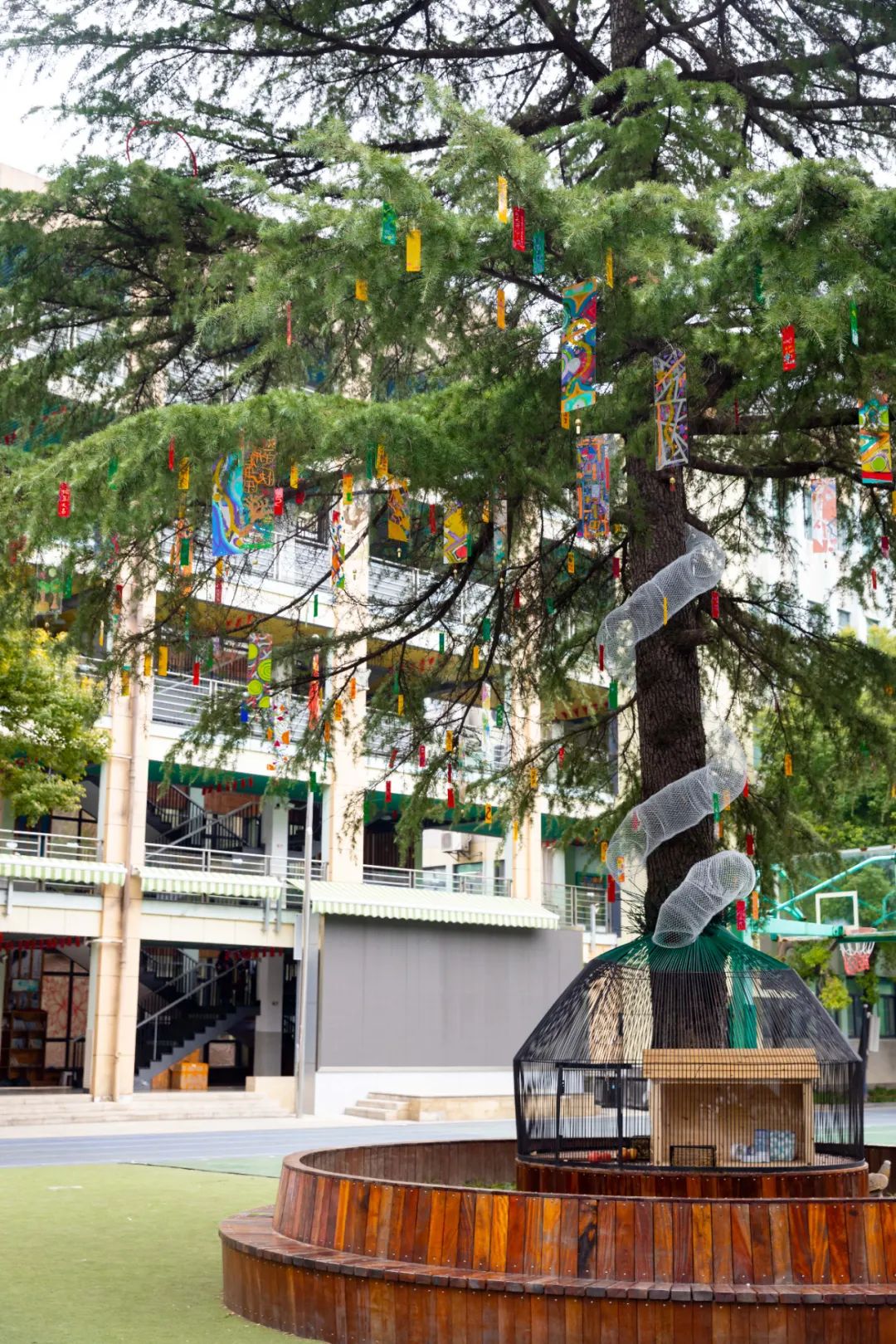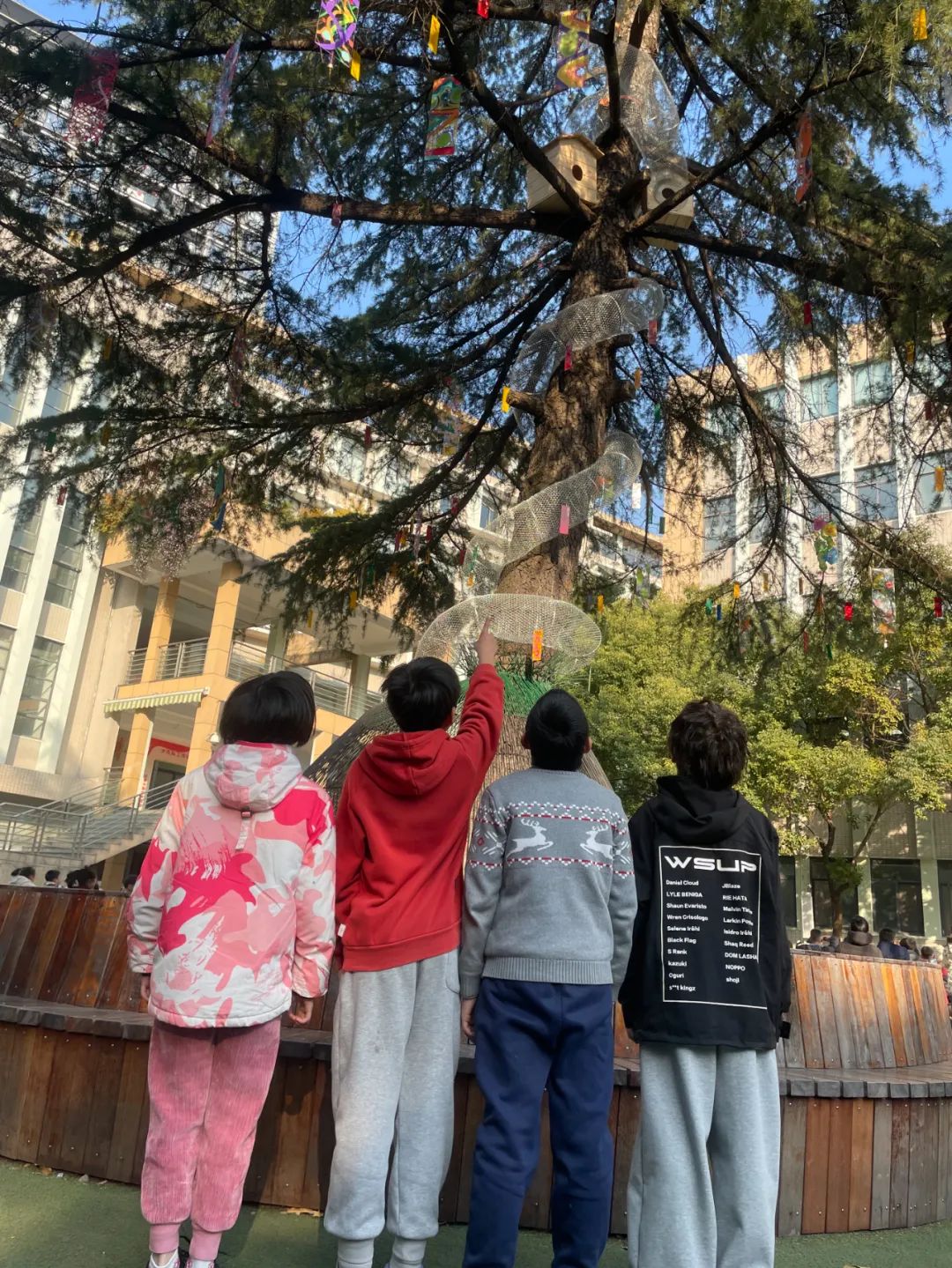 “这两棵松树可以说是学校的精神坐标。”负责后勤工作的支老师1998年毕业来校工作,这两棵雪松是他在1999年亲手栽下的,感情很深。两棵松树见证学校的发展,也陪伴师生们的成长,“现在,多亏了孩子们的创意,让两棵松树实现‘牵手’啦!”