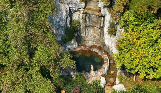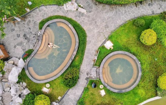 依山而建的石阡佛顶山温泉小镇,60多个风格各异的温泉池散落在丛林中,隐秘性极佳。水雾氤氲,即使懒懒地躺在泡池里,也能游目骋怀。