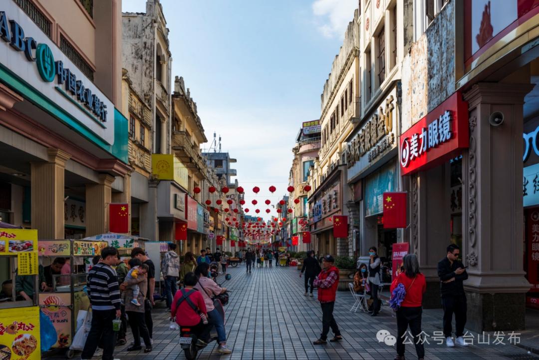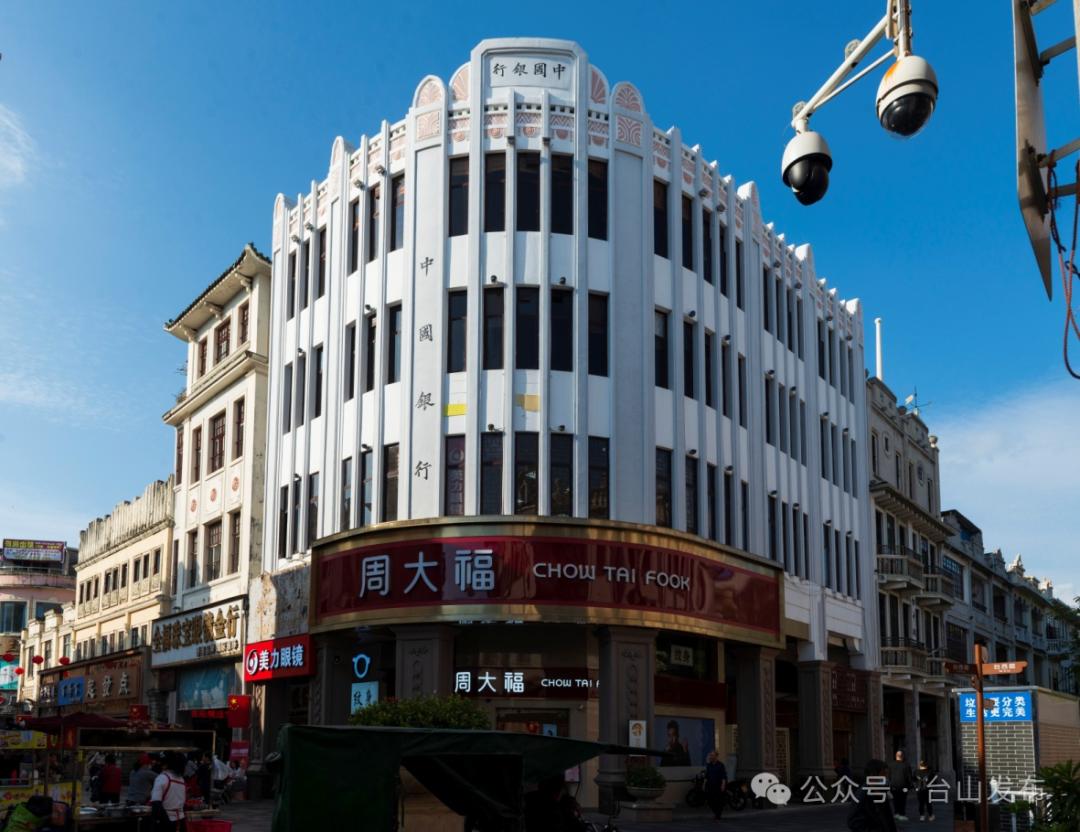 台城台西路,摄于2022年2月20世纪前期,台西路最响亮的代名词,当属“银行街”。台山华侨众多,侨汇数额巨大。据《台山金融志》记载:在中华民国时期,先后设在我县新式的公私营银行有12家及私营信托公司1家,其中有6家银行先后设址于台西路。此外,陆海通银号亦在此街,其金融地位可见一斑,是名副其实的“银行街”。台西路的第一家银行,是1924年开办的香港广东银行,为私营银行,在今台西路157号。此后,私营的广州五华银行、广州储蓄银行,国民政府国营的中国银行、邮政储金汇业局,地方政府经营的广东省银行⑥等陆续开办。
