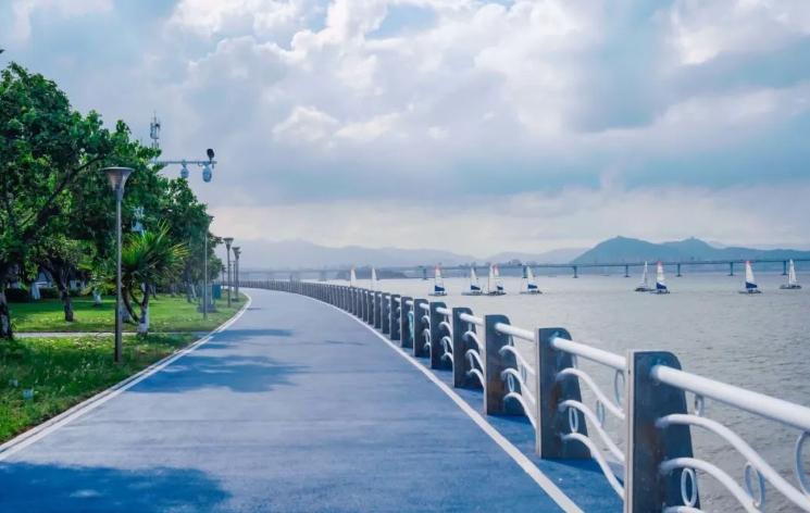 湖里区环岛慢行道“蓝丝带”是一条依山傍海的环形跑道,全长约23.6公里,对长跑爱好者来说,是完美适配的“半马”训练。对普通市民来说,这条慢行步道也能完美兼容骑行、慢跑、散步等,在家门口就能轻松实现健身自由。