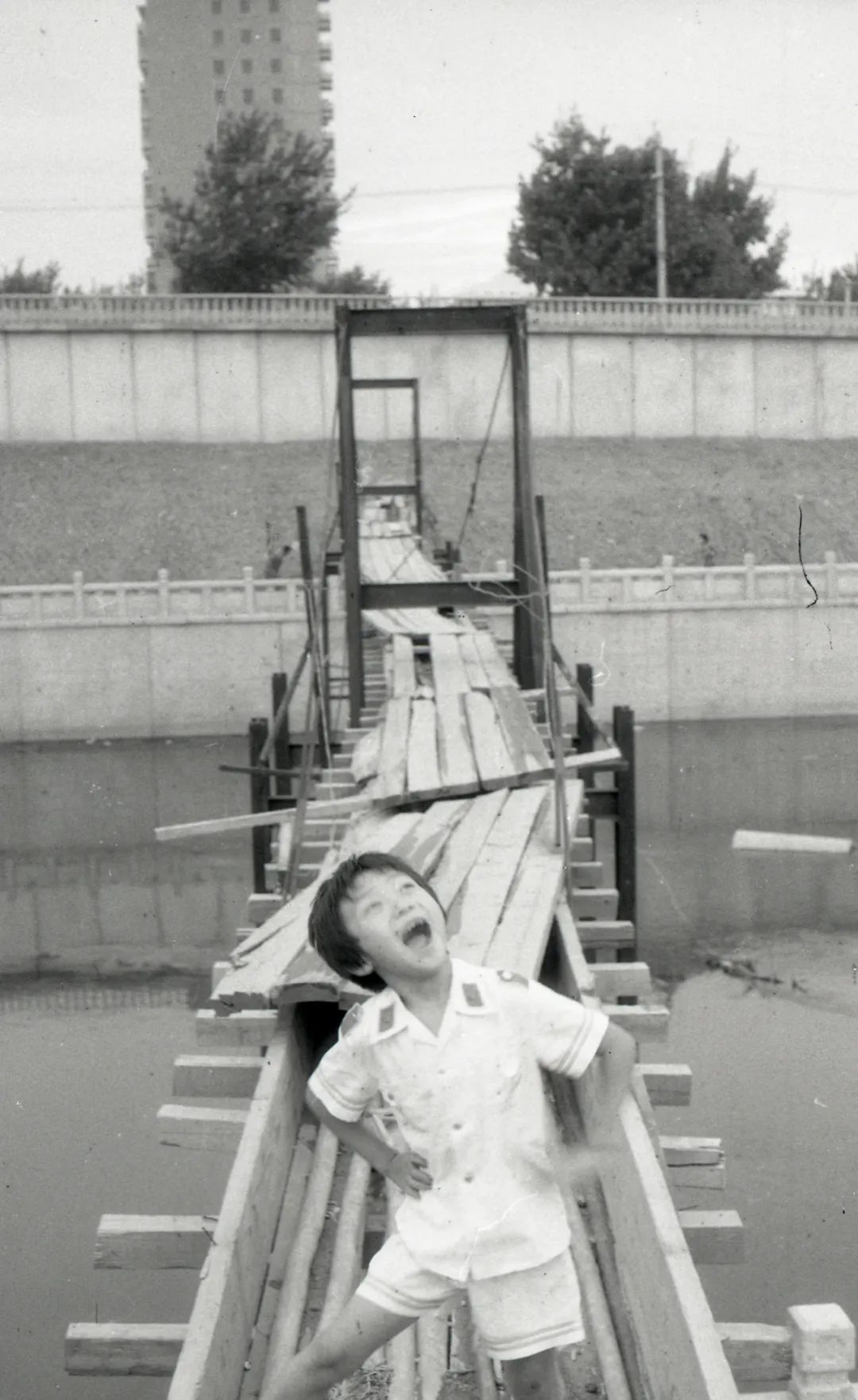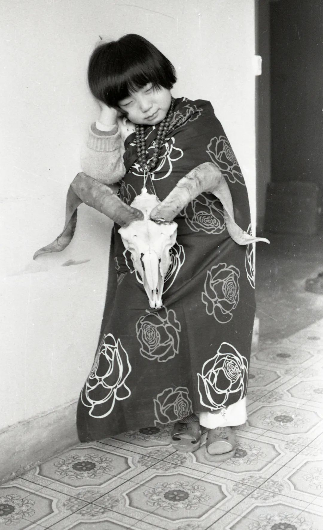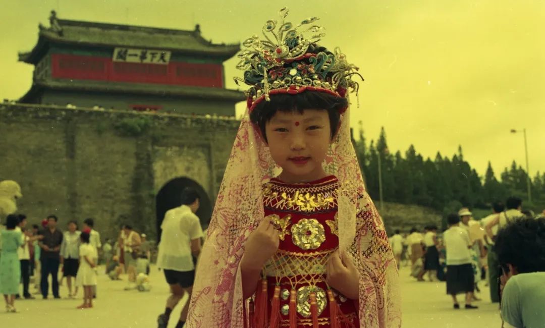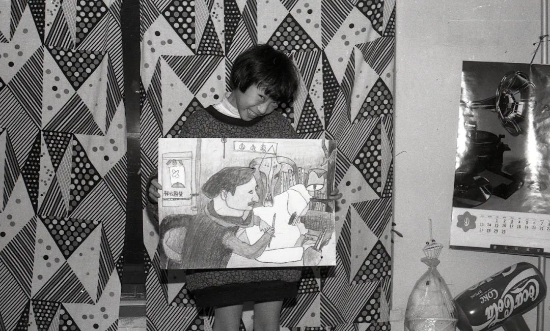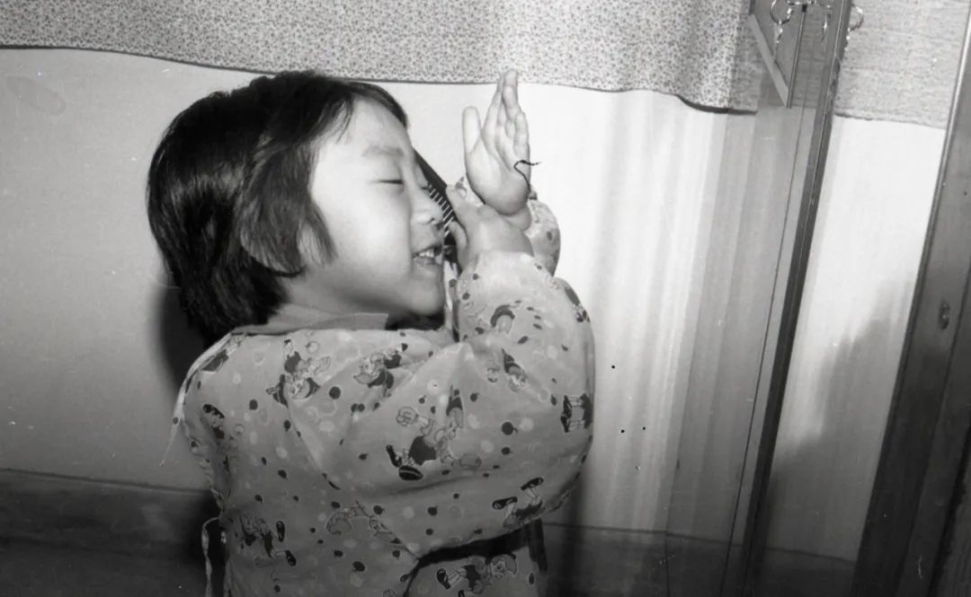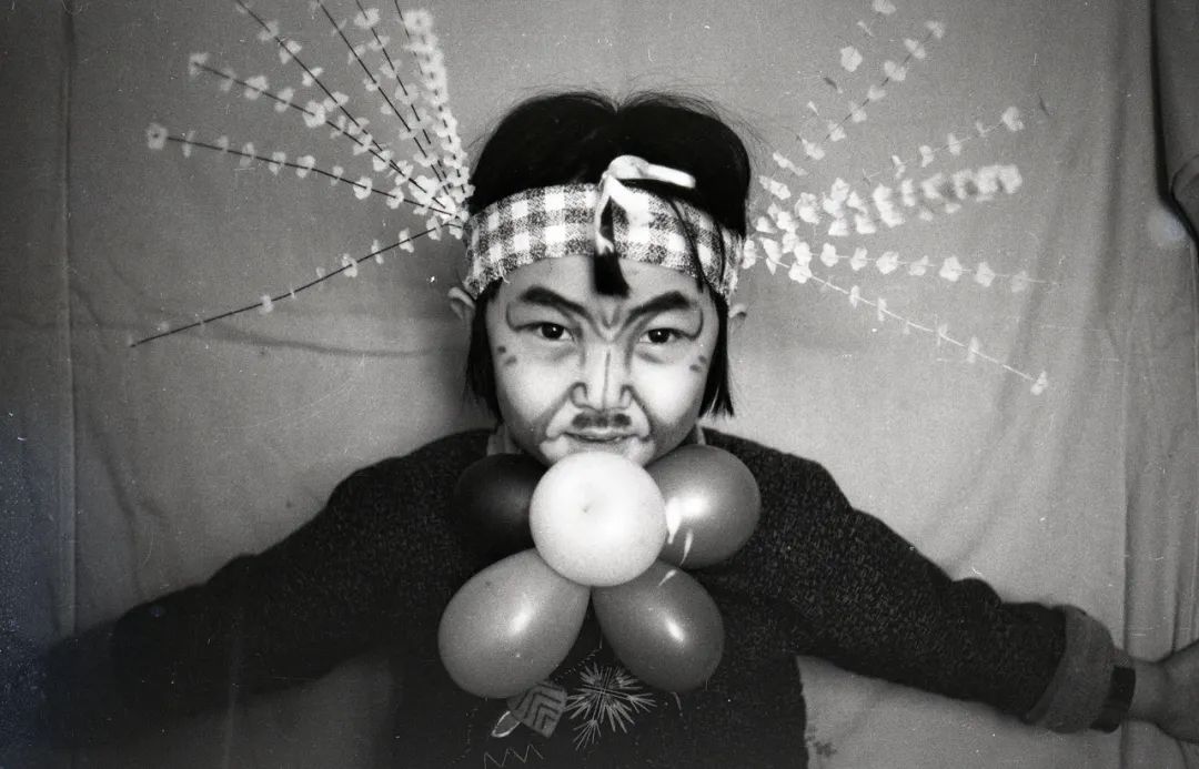 孩子与家庭,生活的滋味提到家庭影像,它的核心必然是孩子的照片。苏月斫家也不例外。家庭相册就是一部孩子的成长史,一部镶嵌着私人基因密码的视觉史。斫子是他们家一个无比可爱的“麻烦”。父母的宠爱是完全视觉化的,体现在照片反复拍摄妈妈爸爸和孩子的亲吻、拥抱,体现在父母给孩子拍摄正式纪念照中精心的发型和时髦的衣服搭配,体现在十五年来每个生日在同一棵树前的留影……另外,他们家还有自己的独特之处:八九十年代,父母竟然玩起“导演摄影”的大戏。他们极富想象力地给孩子装扮造型,用画笔制成“草裙”、用围巾和羊头的搭配塑造异域女神、画变形的京剧脸谱配气球领花,等等。幼小的孩子是天才的演员,一家人合作的搞怪照片,为庸常的生活创造了无尽的欢愉。这样的摄影游戏在中国家庭影像中稀少而珍贵。
