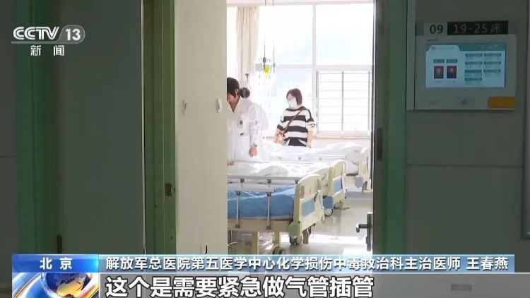 解放军总医院第五医学中心化学损伤中毒救治科主治医师 王春燕:严重中毒的话,会累积到呼吸肌,导致呼吸肌麻痹无力,呼吸困难,是需要紧急做气管插管,上呼吸机的。