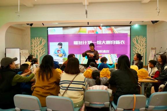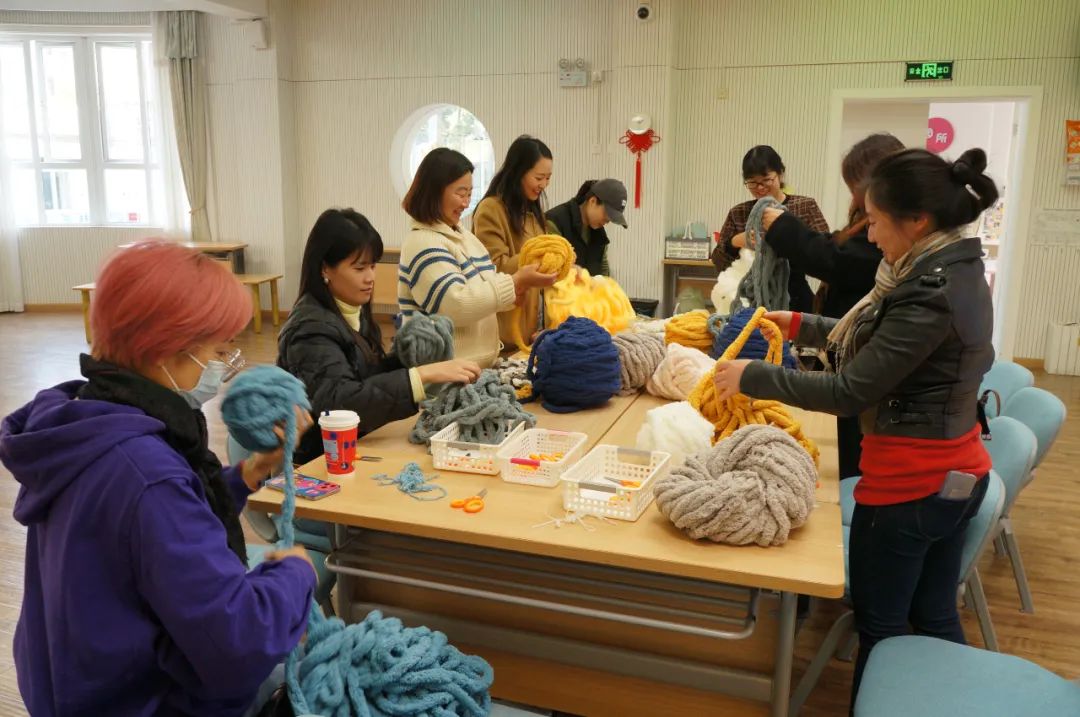 “一开始,我们以为是拿家里的旧衣服给大树穿上;结果到了教室,发现有好多毛线。于是我硬着头皮开始了编织学习。”中五班幼儿王奕宸的妈妈笑言,“一个门外汉和一团毛线斗争,折腾一晚上还织错了,第二天重新来过,总算完成了。在这个过程中,我还发现了孩子热心、认真的一面,觉得非常值得。”