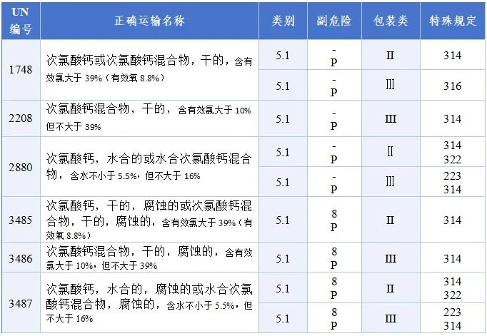 注意:对于水合次氯酸钙和水合次氯酸钙混合物,可通过有资质的检测机构对运输条件进行鉴定后进行豁免。(二)包装要求