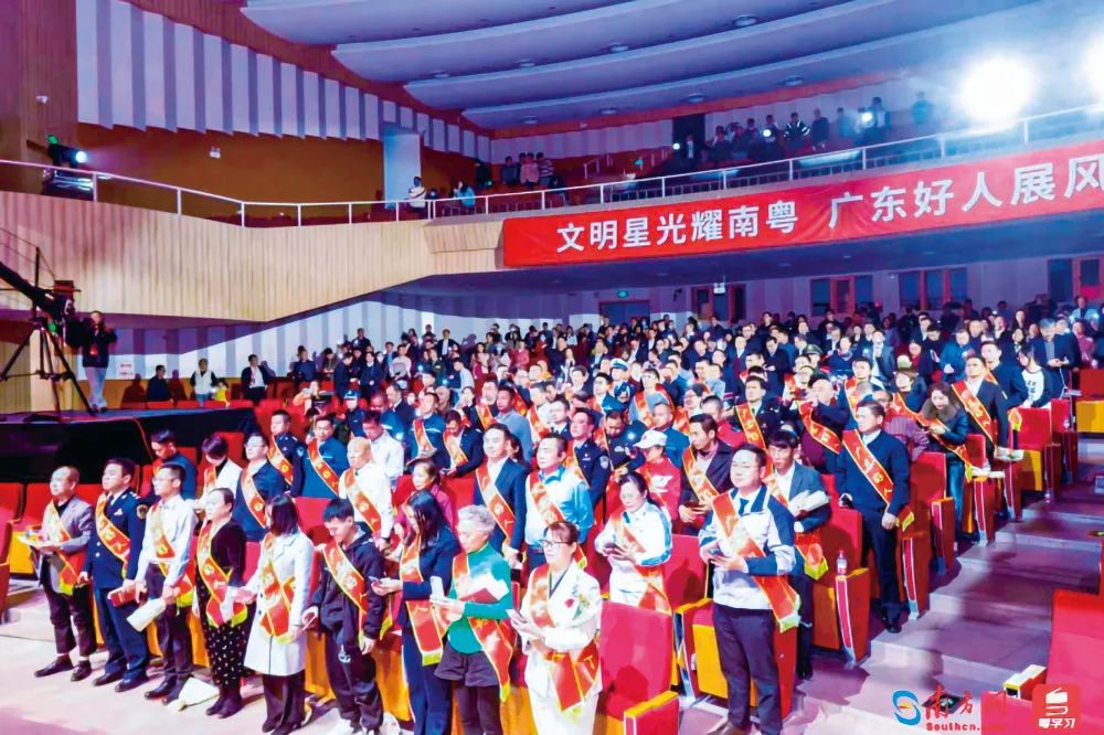 2024年“广东好人”发布暨广东省文明实践成果汇报现场。来源:南方网由广东省委宣传部、省文明办主办,南方报业传媒集团、南方新闻网承办的2024年“广东好人”发布暨广东省文明实践成果汇报近日举行,196人获评2024年“广东好人”。