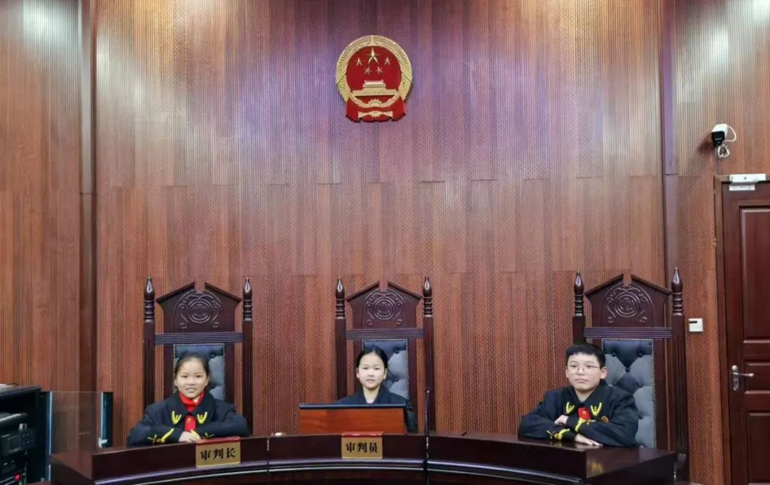 在法院干警的引导下,同学们纷纷穿上法袍、律师袍,轮流坐上审判席与当事人席,化身“小法官”“小律师”参与庭审。模拟庭审结束后,同学们还依次敲击法槌,在沉浸式法律职业体验活动中激发了对法律职业的向往。