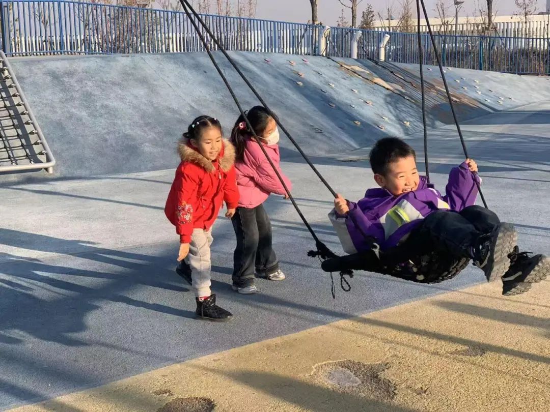 银川市节水主题公园儿童游乐场内,6岁的张瑾瑜坐在月亮形秋千上,随着秋千的摆动,张瑾瑜开心地哈哈大笑。“这个秋千不高,我的脚往下一放就碰到地面上了。”张瑾瑜给记者演示。这里的秋千座椅离地不高,晃动幅度也不大。3岁的程萌路在妈妈的陪伴下玩跷跷板。“跷跷板的座椅很低,孩子脚一抬就跨上去了,扶手是星星、月亮的设计,孩子很喜欢。”程萌路的妈妈李鹏娟说。
