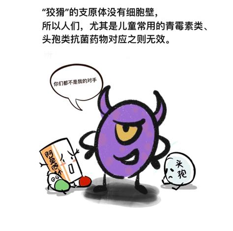 但因为“狡猾”的支原体没有细胞壁,所以人们,尤其是儿童常用的青霉素类、头孢类抗菌药物对它无效。