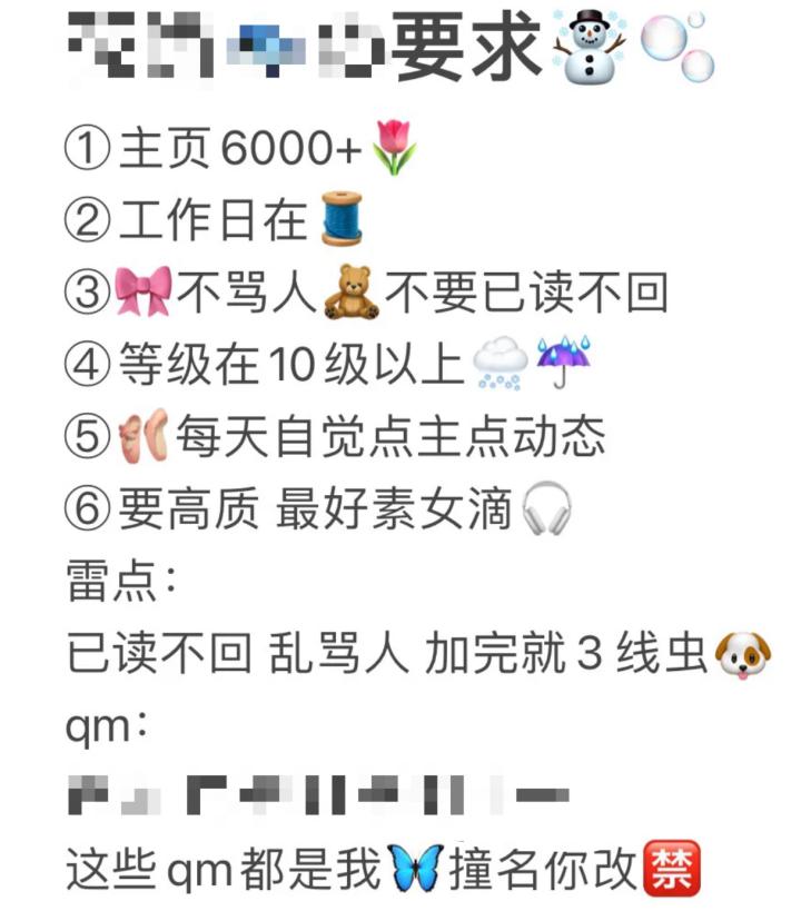 “3天不互动删”“雷周末不互动”“雷私催”“上学期间不退”等看起来像是黑话的条条框框,是这个社交圈中的细分。