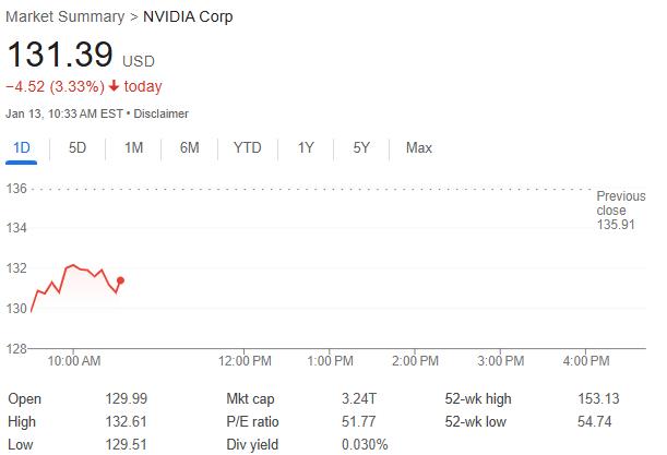 消息公布后,英伟达美股早盘一度跌超4.7%,收跌1.97%。