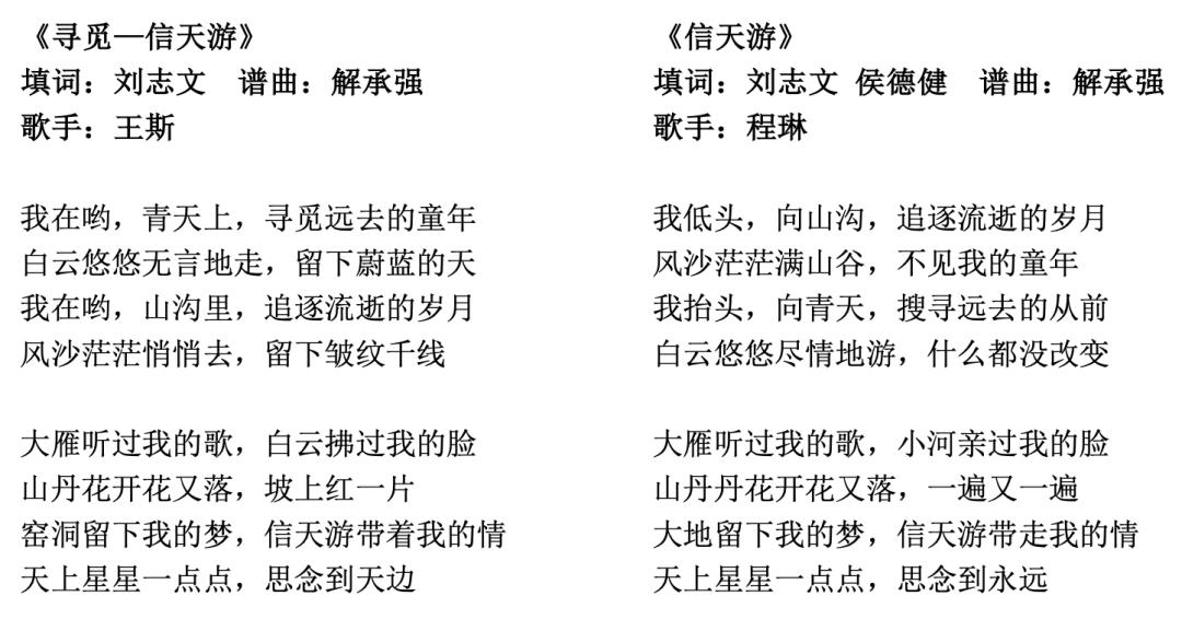 △ 两版《信天游》歌词对比
