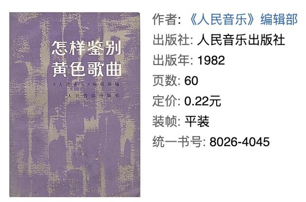 人民音乐出版社特意出版《怎样鉴别黄色歌曲》,把港台流行乐视为洪水猛兽来防御。
