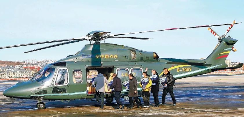 ▲大连低空通用航空有限公司的直升机,1月14日载着6名乘客,顺利完成大连至长海航线首航。