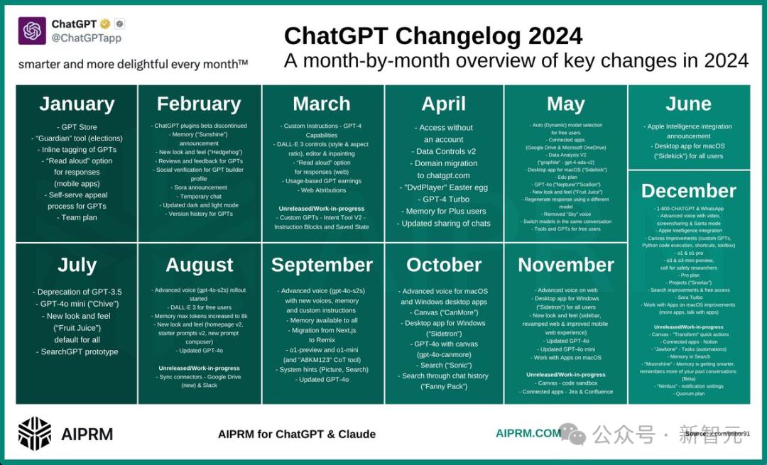 【新智元导读】2024年,OpenAI的ChatGPT在大模型领域不断突破,推出了多项创新功能,如个性化聊天机器人商店、增强记忆功能、多模态处理能力等,在安全性、稳定性和高效性方面也持续优化,一起回顾一下吧!
