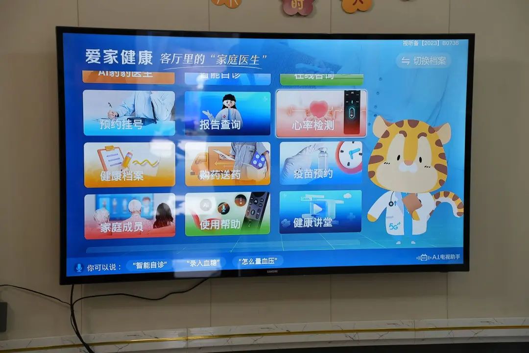 其中,平台上线的AI健康咨询可实现高清盒语音交互、移动爱家等