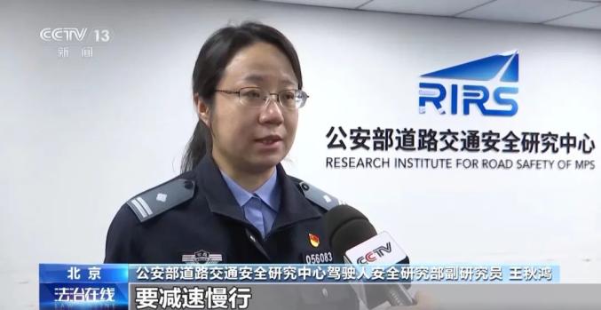 公安部道路交通安全研究中心驾驶人安全研究部副研究员 王秋鸿:从驾驶人的角度来看,驾驶人行车中要注意观察,在通过可能产生风险的区域的时候,要减速慢行,同时也要有一种“防御性驾驶”的理念,要养成常备刹车的习惯,这样的话一旦遇到突发情况,能够有充足的时间来应对。