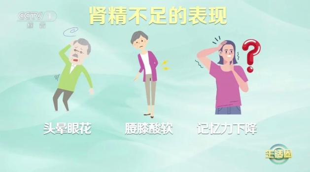 肾精不足的表现:头晕眼花、腰膝酸软、记忆力下降。