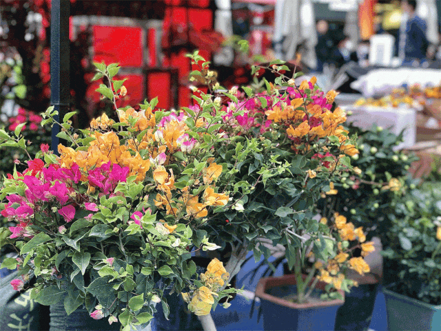 迎春花市设置20个展位,包括兰花区、游乐区、盆栽区、年货区、桃花区、文创区、年桔区等。