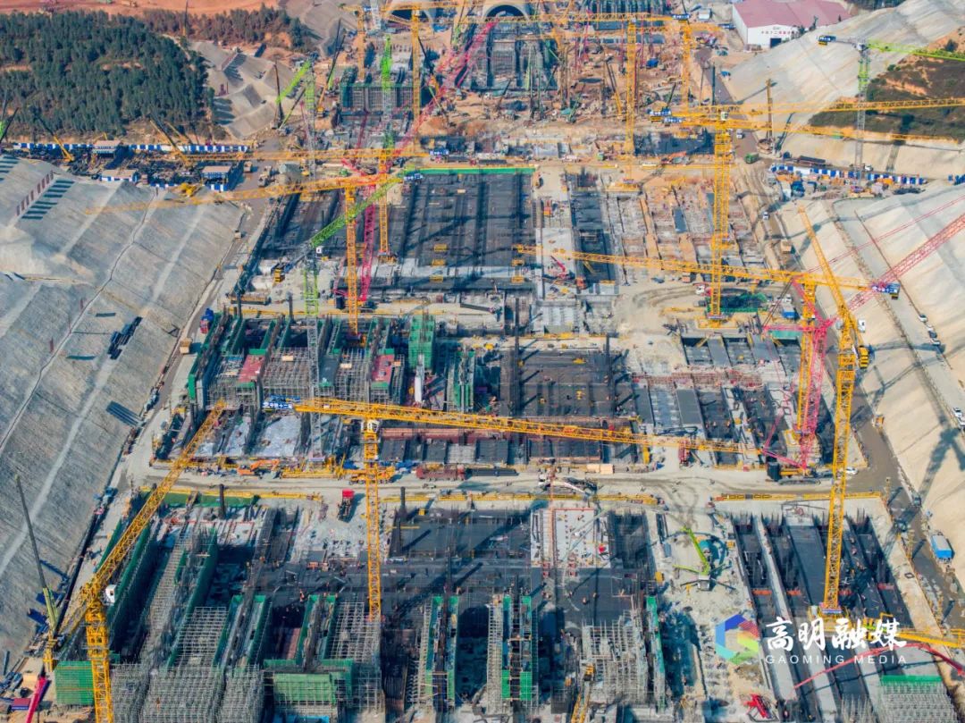 最繁忙的时候,广州新机场站的施工工人多达万人。图源广州日报新花城