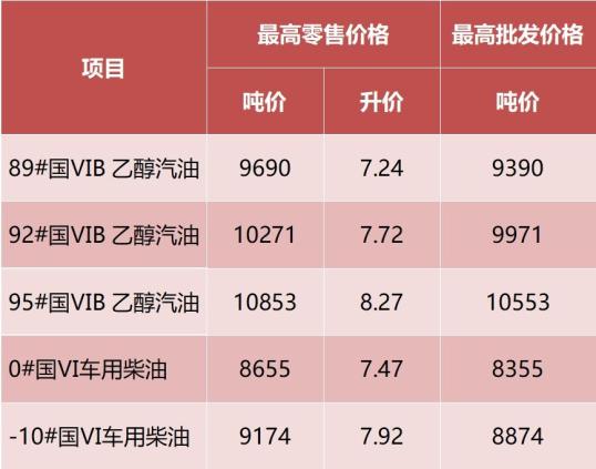 安徽省汽柴油最高零售和批发价格表