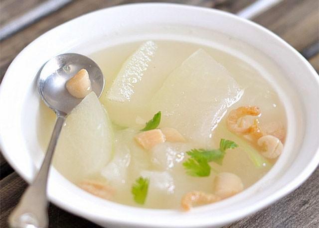 冬瓜一个,切去上端当盖。挖出瓜瓤,填入浙贝母12克、杏仁10克、冰糖少许,入锅内蒸熟后早晚分服。本品止咳化痰润肺,为肺气肿患者常用的药膳。