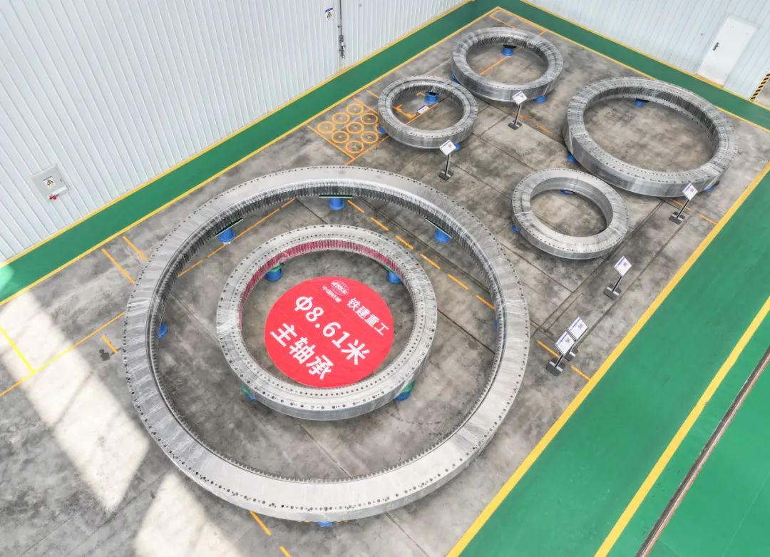 直径8.61米盾构机主轴承主轴承是掘进机的“心脏”,直面极端恶劣工况考验,处于大型高端精密轴承最顶端,被列入制约我国工业发展35项“卡脖子”技术,是掘进机产业链自主化的“最后一环”。铁建重工建成国内最大、国际领先的主轴承生产线,打造全球最大主轴承工况模拟试验台,解决了大型低速重载主轴承疲劳寿命难以验证的世界性难题。成功研制全球最大8.61米及以下全系列掘进机主轴承,通过多规格主轴承可靠性试验,批量应用于国家重点工程项目,国产掘进机有了全系列“中国心”。