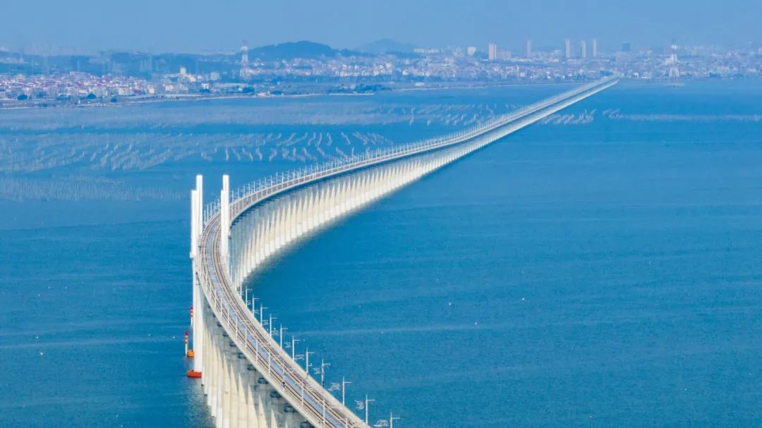 泉州湾跨海大桥福厦高铁设计时速350公里,跨越泉州湾、安海湾、湄洲湾三大海湾,跨海段总长20.4公里,其中,泉州湾跨海大桥主跨400米且海中长距离(9公里)并行既有公路桥,安海湾跨海大桥主跨300米、均与既有公路桥并行。
