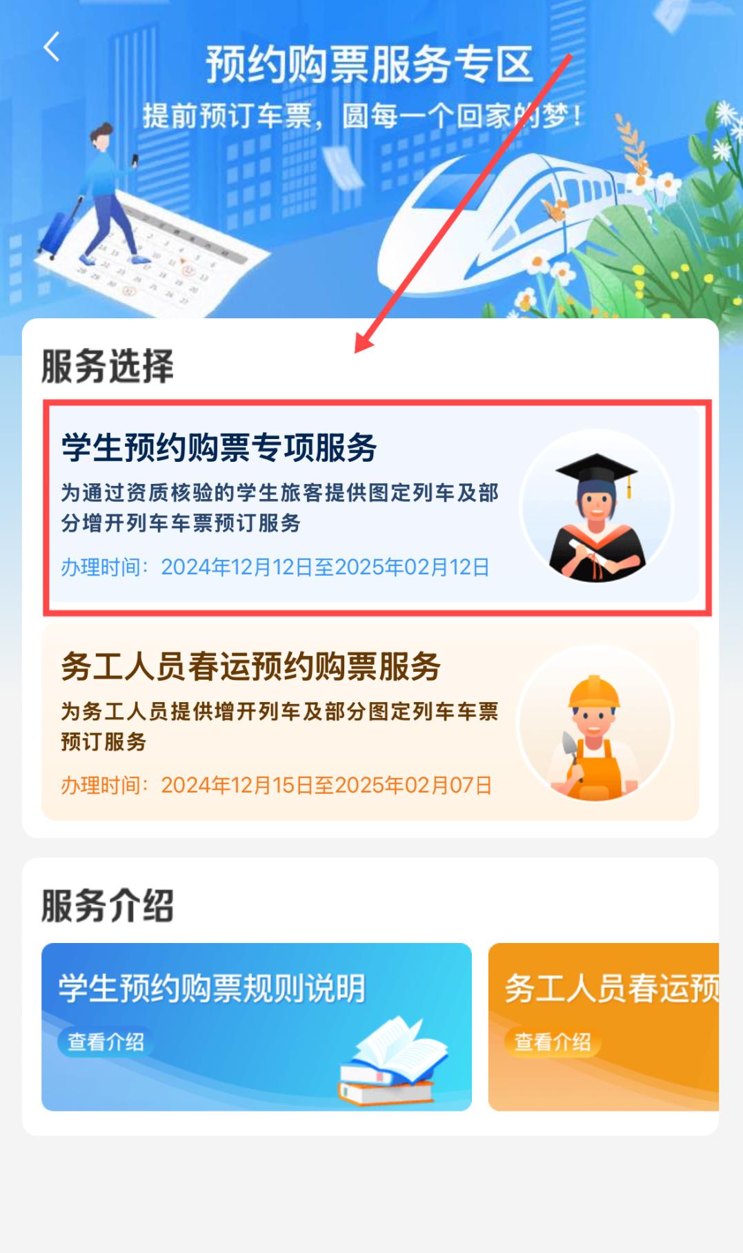 学生预约购票专项服务2024年12月12日至2025年2月12日