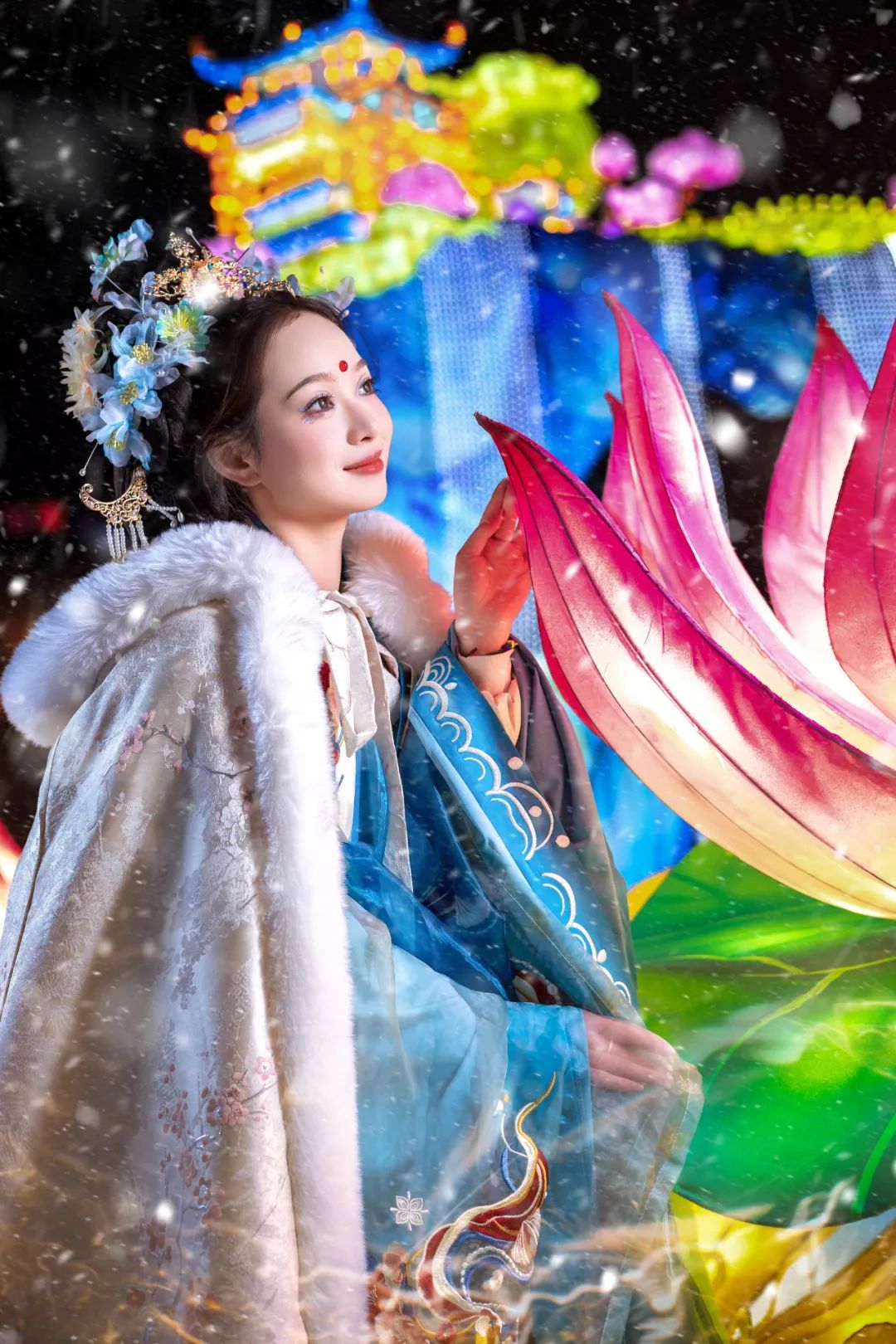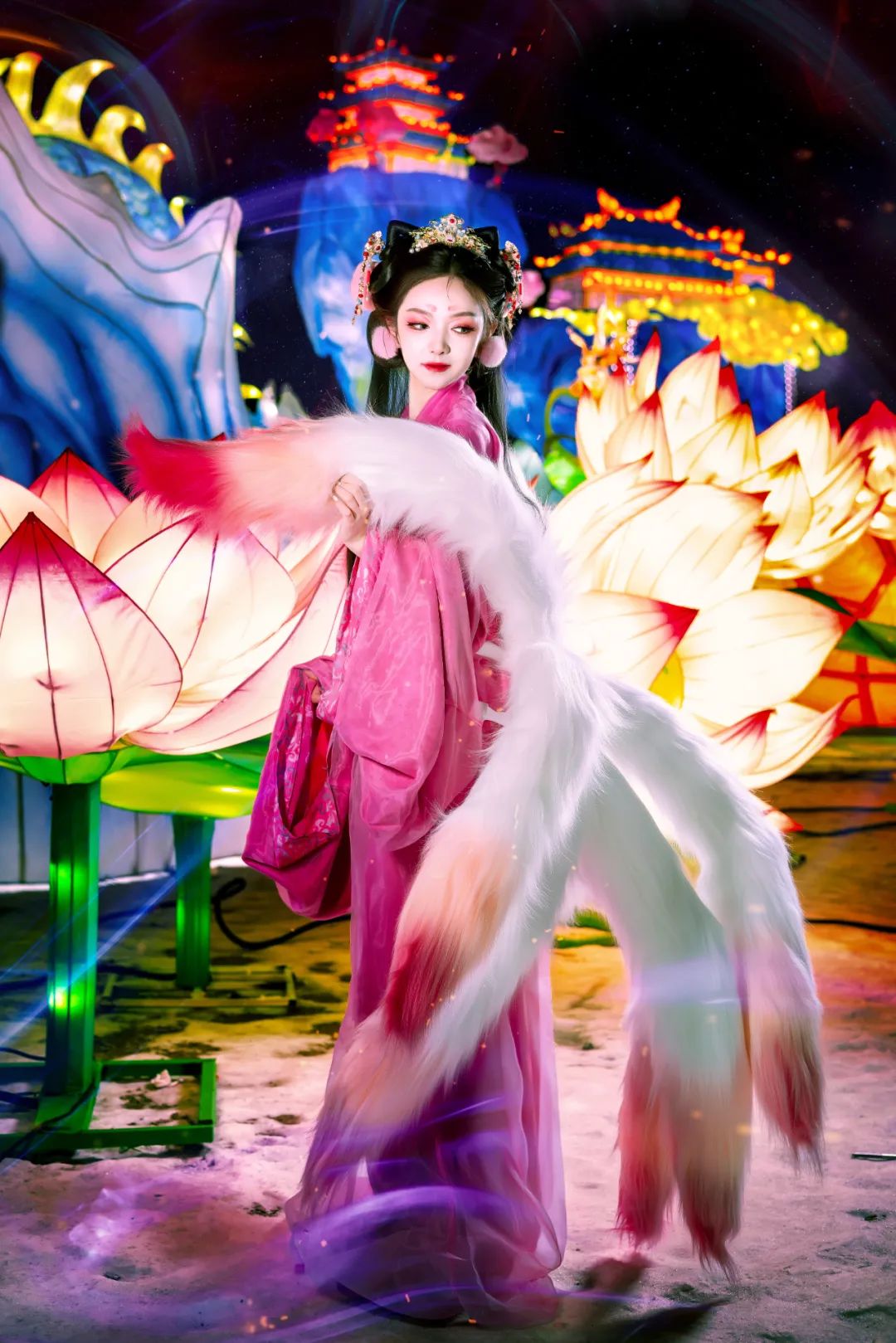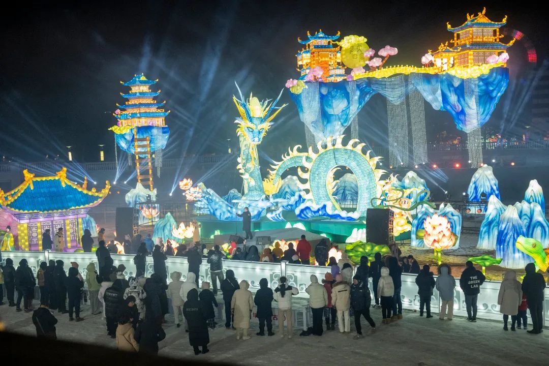 烟花于夜空轻舞飞扬,花灯在大地流光溢彩。80余位自贡匠人夜以继日,历时近两个月,打造了100余组炫彩花灯——“长白天下雪,盛世中国年”2025年长影新春冰雪灯会,集冰雪之美、彩灯之美、电影之美、新春之美于一体。