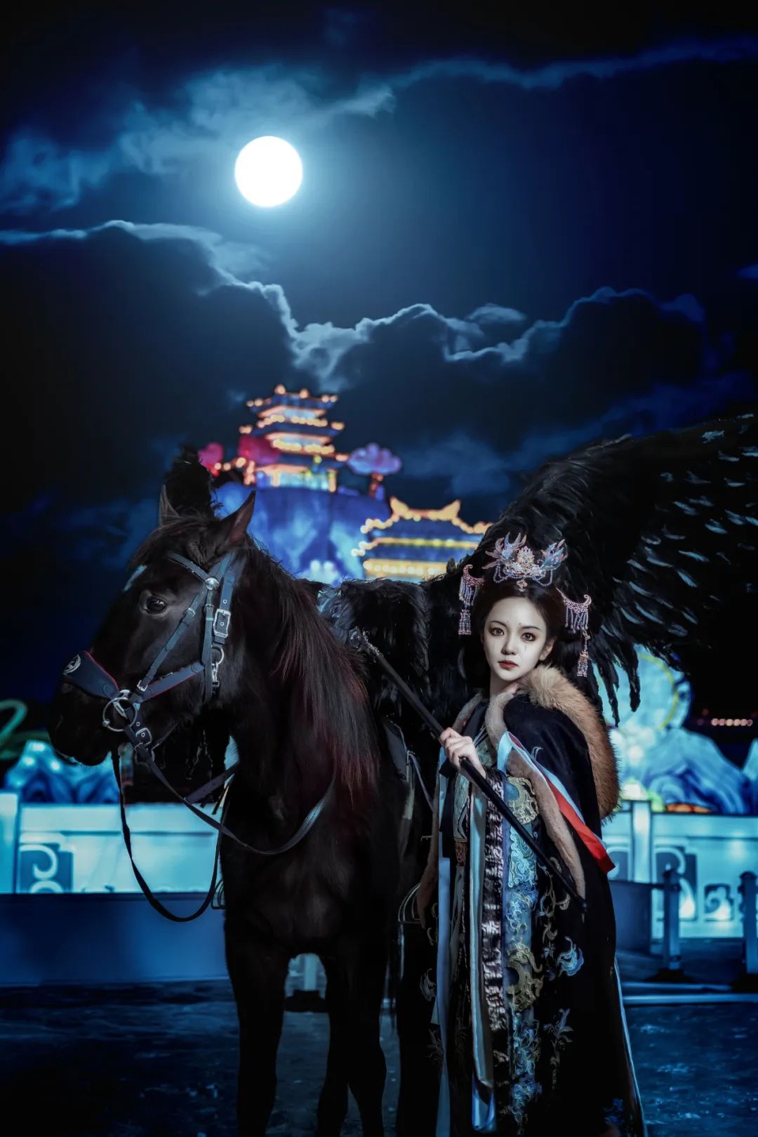 冰雪与灯光交织的绮丽