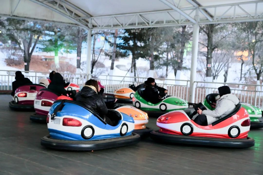 玩完雪滑梯,再开碰碰车。安全带系紧,方向盘抓稳。每一次转弯都充满了未知,刺激与欢乐并存。
