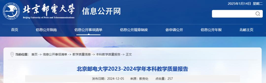 近日,北京邮电大学公布了该校《2023-2024学年本科教学质量报告》,其中提到该校本学年首次开展本科团队毕业设计(论文),鼓励学生跨专业、跨学科进行毕业设计(论文),有6个团队参加团队毕业设计。