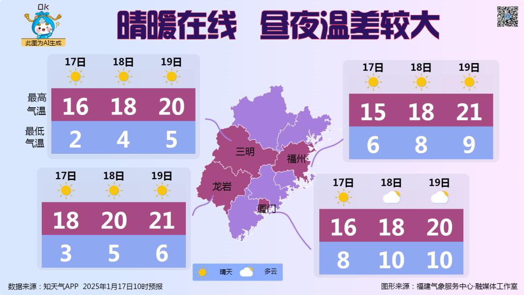 福建以晴到多云天气为主