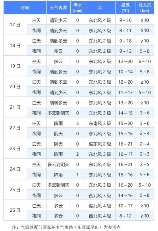 厦门方面,未来几天