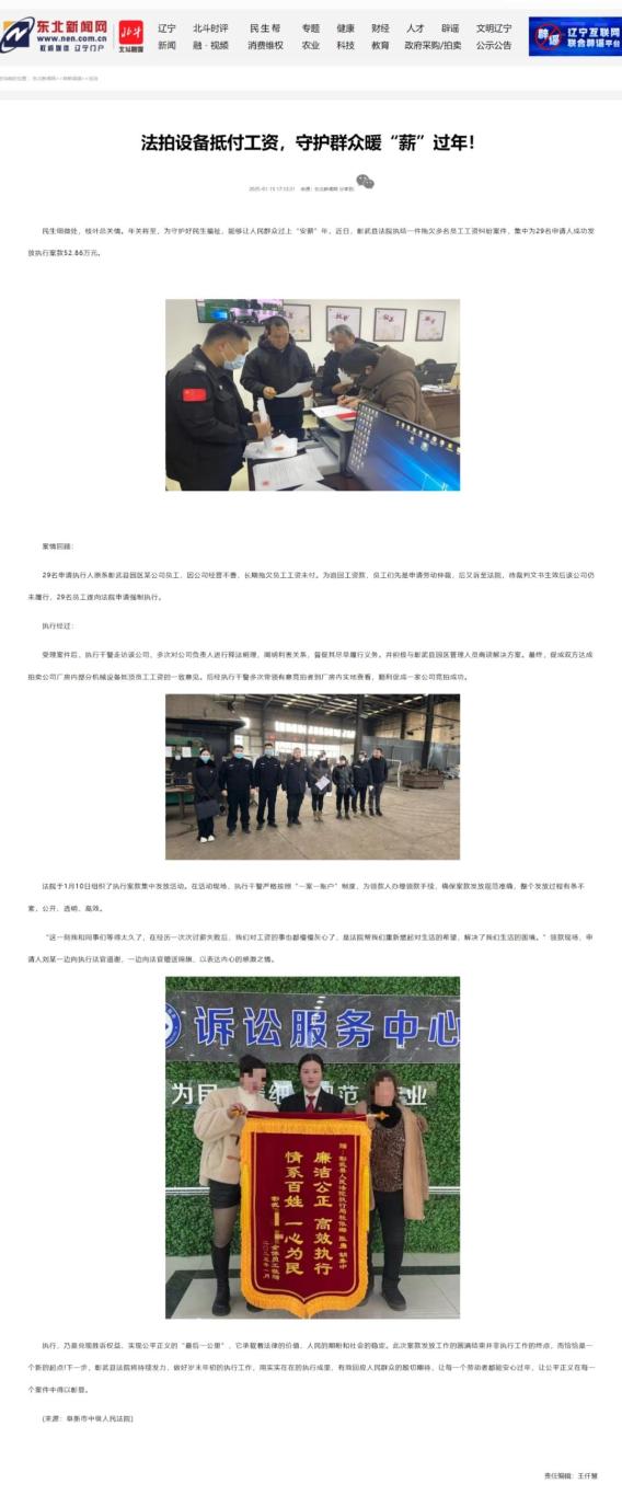 东北新闻网:法拍设备抵付工资,守护群众暖“薪”过年!