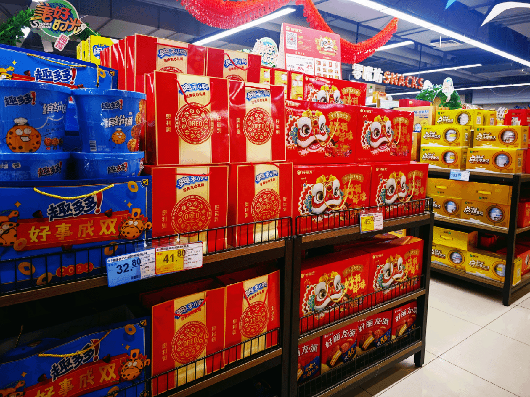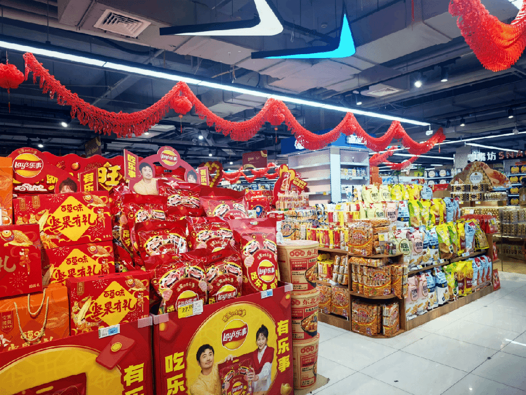 一路向西,位于永德路虹梅南路弘基生活广场地下一层的吉买盛超市,这里也在热热闹闹地备战“年货档”,超市负责人告诉小编,为了满足吴泾市民年货采购需求,超市内年货一条街从1月10日开始将一直延续到元宵节。产品上以品牌年货为主,其他品牌为辅,还有粮油米面等等,分阶段开展促销活动,以看得到的实惠给足市民满满“情绪价值”。超市对年货市场充满信心,备货量比去年增长了35%。