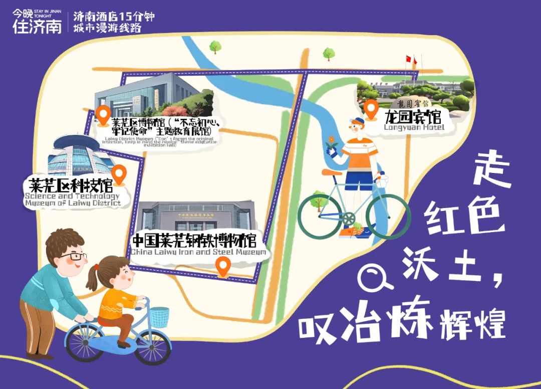 龙园宾馆→莱芜区博物馆(“不忘初心、牢记使命”主题教育展馆)→莱芜区科技馆→中国莱芜钢铁博物馆→龙园宾馆
