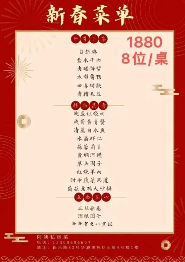 粤菜,向来是大受欢迎的菜系之一。位于旭辉U天地的“干饭吧”餐厅在蛇年到来之际推出“财运亨通”年夜饭套餐,菜品包含本帮菜、粤菜经典菜、点心等,让您一个价钱,多重享受。