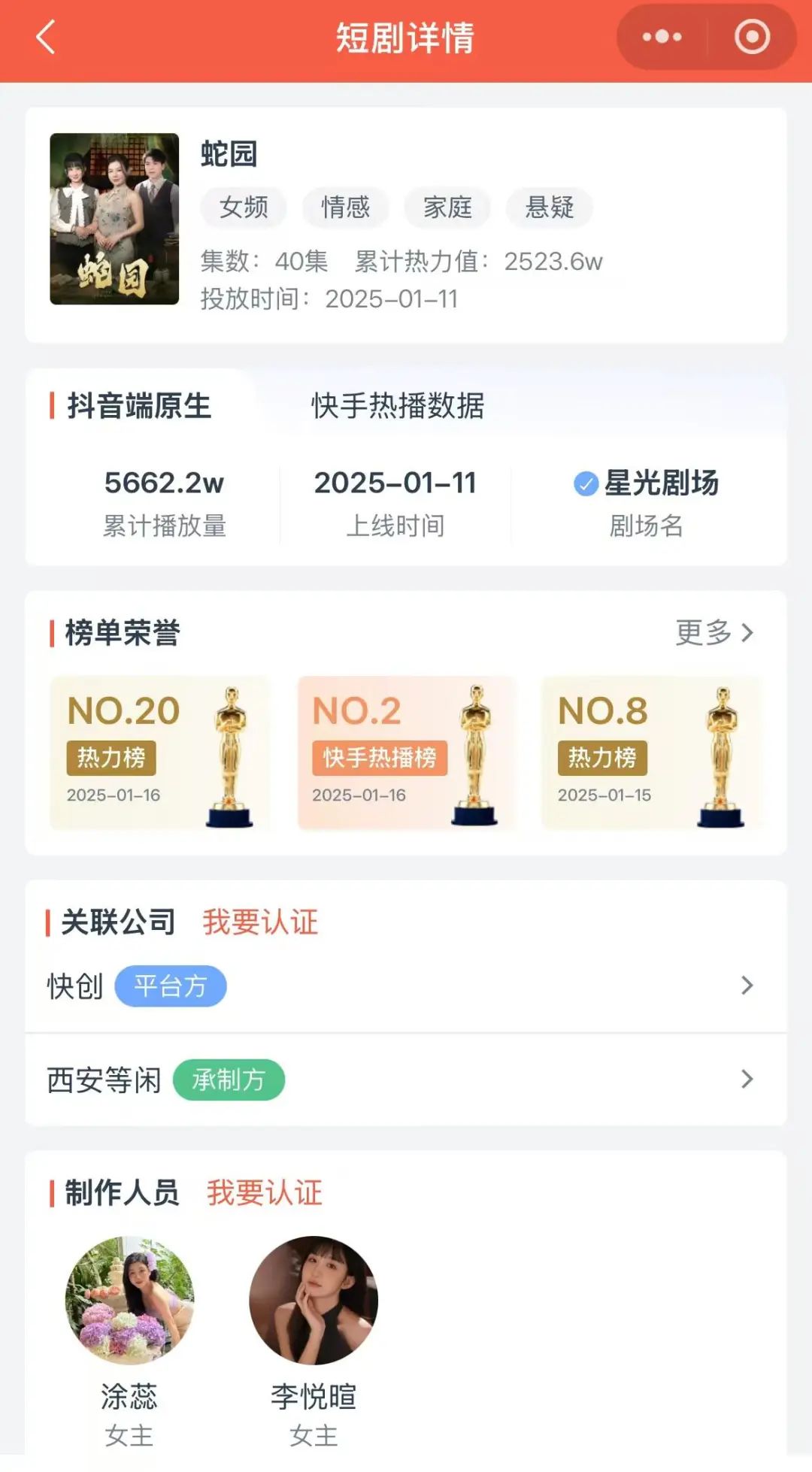 《蛇园》虽然短期能收割流量,长远来说会使整个悬疑短剧市场被贴上“骗钱”“低质”的标签,这种“吊胃口不填坑”的创作方式,会导致观众对同类型的惊悚、志怪、悬疑短剧的信任度大幅下降。