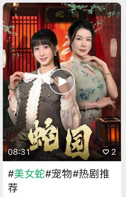 《蛇园》通过三十多集的铺垫,将视听语言、人物对话以及情节暗示都引导至民间广为流传的“美女蛇”“人彘蛇”故事(农村集会或公园肯定都看过类似表演),甚至该剧一些引流的短剧素材切片也以美女蛇、人形蛇为标签,成功吸引观众的注意力。