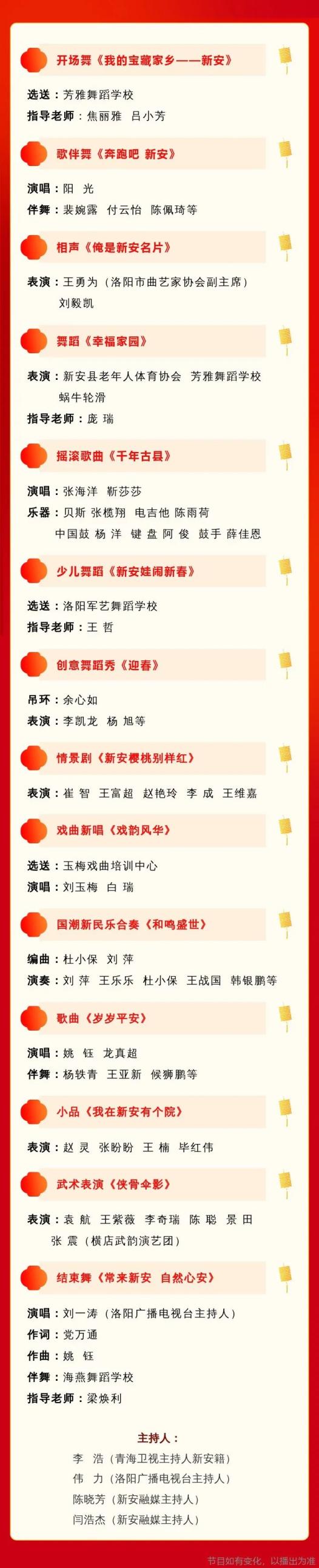 原标题:《“巳巳如意新安年”新安县2025年春晚节目单公布》