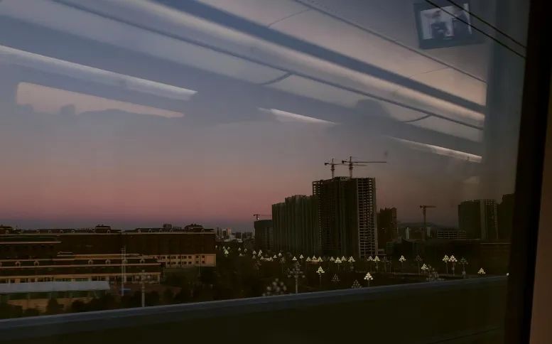 在火车上偶然拍下的晚霞,旅途的意义也藏在这温柔的暮色里。